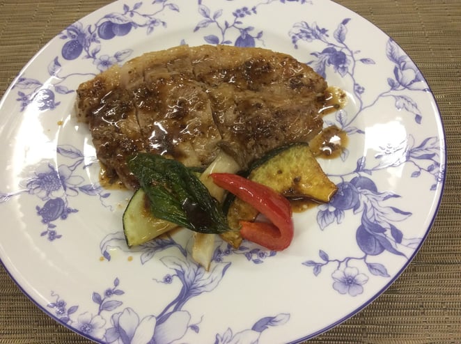 地元(旧神林村)のブランド豚、越乃黄金豚の分厚いロースをご賞味ください。